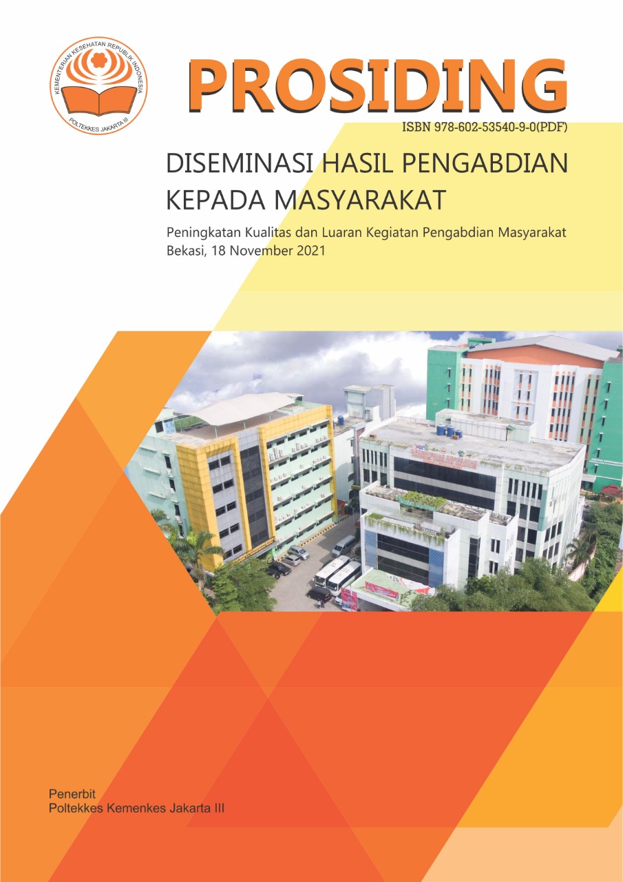 Prosiding Diseminasi Hasil Pengabdian Kepada Masyarakat diterbitkan oleh Poltekkes Kemenkes Jakarta III pada tahun 2021 dengan ISBN: 978-602-53540-9-0 (PDF)